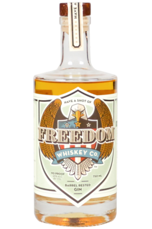 Freedom Gin is distilled with juniper, lemon peel, coriander, chamomile, lavender and calendula flower. It is finished by aging in our bourbon barrels for 2 years.